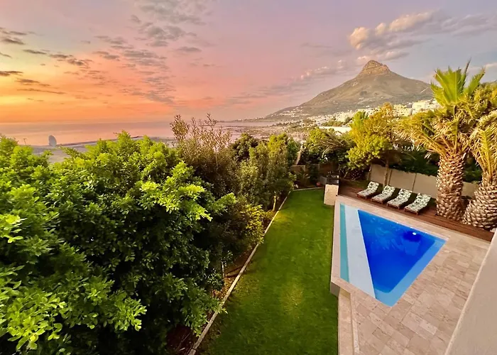 La villa de 400 m^2 est fixée dans le quartier Camps Bay et près de Beta Beach. La plage la plus proche est dans un rayon de 200 mètres. La zone offre des choix de restauration, comme le Gelato Mania et le Bootlegger Coffee Company à 200 mètres de l'établissement. Vous pouvez vous rendre au Parc et Jardin de la biodiversité de Greenpoint en quelques minutes en voiture.